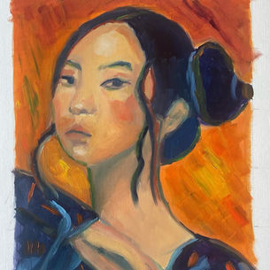 Le contraste saisissant entre la robe sombre de la femme et le fond rose vive attire immédiatement l'œil, tandis que la pose délicate et le regard déterminé apportent une profondeur émotionnelle, évoquant un moment intemporel capturé sur la toile.