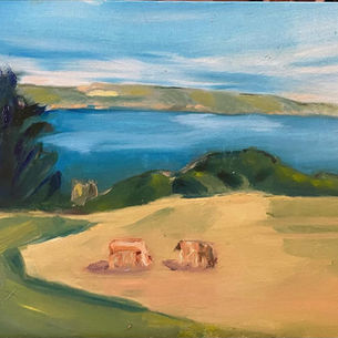 L'œuvre capte un moment intime, presque nostalgique, entre un adulte et un enfant au bord de la mer. Le regard de l'homme vers l'horizon contraste avec celui de l'enfant, tourné vers l'observateur, créant une dynamique intéressante. Les tons bleus et bruns renforcent l'ambiance paisible et familière de la scène. La technique à l'huile apporte une profondeur et de la richesse aux couleurs, suggérant la chaleur d'un jour d'été. Cette peinture invite à contempler la relation entre l'humanité et les éléments naturels environnants.