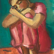 Cette aquarelle capture un moment simple mais profond, où la connexion silencieuse entre la femme et le chat crée un espace de réflexion et de calme. La robe bleue attire le regard tout en s'harmonisant avec les teintes chaleureuses environnantes, soulignant une esthétique impressionniste qui privilégie l'émotion et la perception du moment.