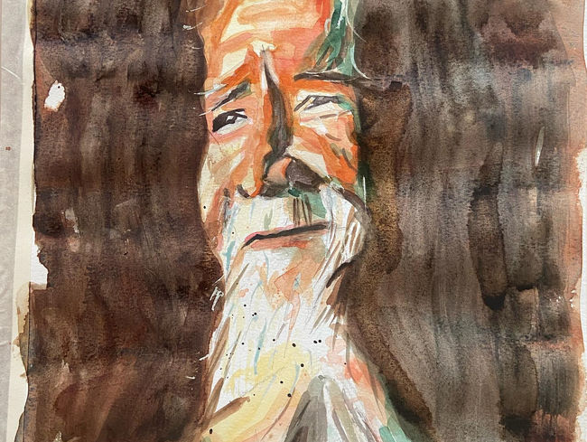 Aquarelle, avec des superpositions de couches pour créer une texture riche.