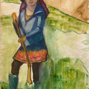 Jaune et ocre pour la peau et le chapeau Secondaire Vert pour le vêtement de la femme
