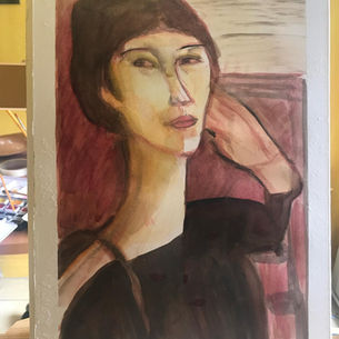 Le tableau présente une profondeur émotionnelle à travers la subtile expression du visage. La douceur des couleurs et la simplicité du fond mettent en lumière les détails du visage, créant une impression de calme intérieur et de réflexion personnelle. L'artiste utilise des nuances délicates pour évoquer une ambiance de tranquillité et de contemplation.