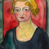 Ce portrait féminin est captivant par la force expressive qui en émane. L’artiste utilise une palette riche en contrastes, opposant les tons chauds du fond et les ombres froides du visage, tandis que les cheveux noirs apportent une structure forte à la composition. L’épaisseur des touches dans certaines zones, notamment les cheveux et l’arrière-plan, renforce l’aspect brut et vivant de la peinture, en opposition avec le visage plus doux et légèrement flouté. L’expression du modèle, rêveuse ou préoccupée, laisse place à l’interprétation du spectateur, amplifiant le mystère de la scène. La touche expressionniste est particulièrement présente dans le choix des couleurs et le modelé du visage, où la fidélité anatomique laisse place à une évocation plus émotionnelle. L’ensemble dégage une impression de tension entre l’intensité du regard et la douceur des teintes, faisant de ce portrait une œuvre à la fois vibrante et introspective.