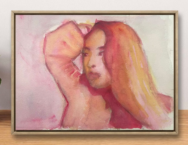 Ce portrait dégage une force émotionnelle particulière grâce à l’attention portée au geste et à la douceur des couleurs. La position du bras, inhabituellement levé, introduit une tension visuelle qui capte le regard. L’artiste exploite le médium aquarelle pour jouer sur les transparences et les nuances, donnant vie à une figure féminine délicate et introspective. L’absence d’arrière-plan élaboré renforce l’intimité du sujet et invite le spectateur à se concentrer sur l’expression du modèle. Une influence moderniste se ressent dans cette recherche d’émotion brute, où le réalisme est volontairement atténué au profit de l’interprétation subjective. Analyse du deuxième tableau (portrait masculin)